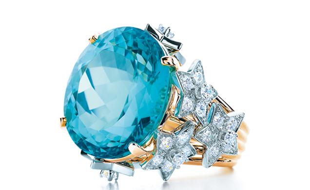 18k黄金镶嵌钻石和蓝色碧玺戒指,让·史隆伯杰为蒂芙尼专属设计