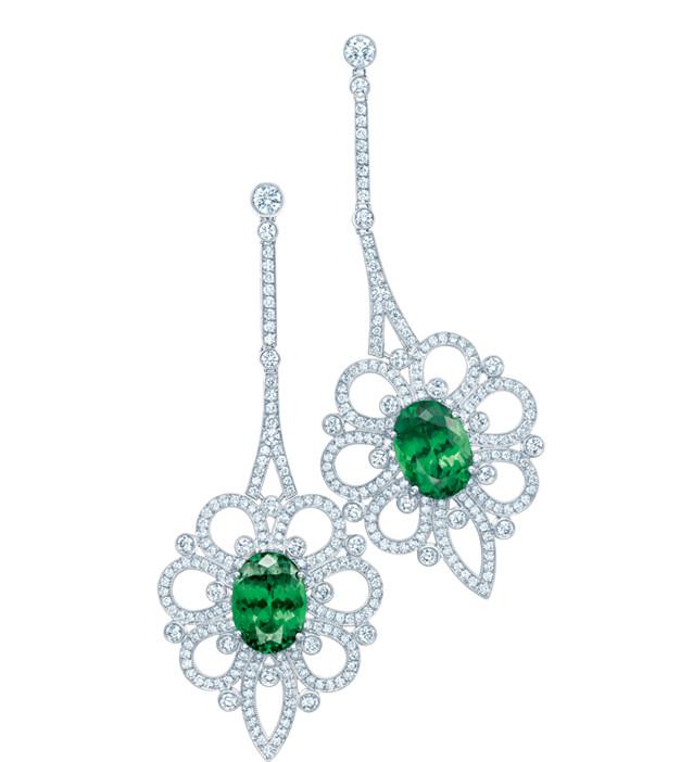 蒂芙尼沙弗莱石耳饰色泽明艳,光彩夺目。