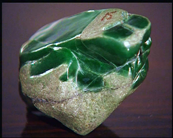 (2)有些玉石原料上有镐的口、断口或切口,用灯照射绿得可爱,但就是不抛光。这样的玉料一定是裂纹太多,水不好,绿不正或绿内夹黑等原因。不敢抛光,一抛光缺点全部暴露出来?遇上这种情况。可指出部位让他抛光后再出价。我想货主决不敢去抛光的。笔者曾见到一块重5公斤的色料,有三分之一全是绿带。全部扒皮看得清楚。但只在芝麻大小范围内抛光,要价500万元,我给最高价80万元。谈判破裂。最后广东有人以300万元买去。后香港有人愿出500万港元购买。广东人觉得赚得太少,于是就自己加工首饰,结果因绿内夹黑只收回120万元,亏了180万元之多。