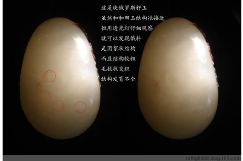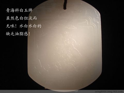 大家在购买白玉的时候一定要注意学会区分“青海”与“和田”。和田玉有个很有趣的特征,你也许没有在意,那就是它有类似人皮肤一样的细小汗毛孔,其实这个是和田玉本身结构特征所形成的表面感觉,这个比喻很形象,不相信可以细看看,而青海玉则没有这样的汗毛孔的。如果你去和田,和田当地人向你推荐的第一个鉴别方法就是这个。