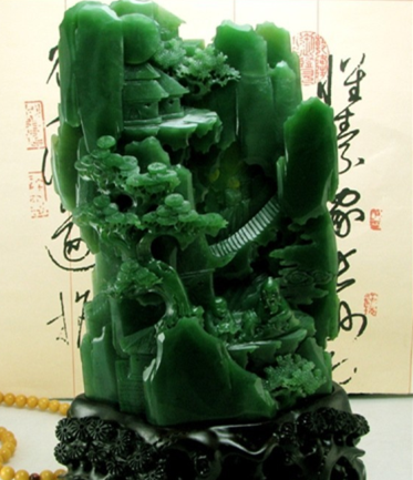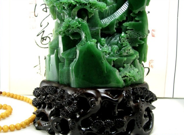前阵子就遇到了一位不幸中招的受害者,以高价买来了一块仿碧玉塑料制品,就是我们看到的下面这张图:碧玉山子摆件。