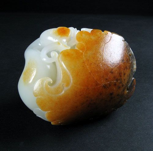 3、石皮 很多朋友也称之为石包玉,就是玉外面包裹了一层厚厚的像石头一样的皮子,谁也说不清有里面的肉质如何,赌性很大