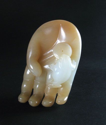 韩料的共性:韩料是四种白玉中致密度最差的料子。料子的韧性也最差,雕刻中非常容易崩口。白度达不到羊脂的情况下泛黄色严重。结构的颗粒感很强烈,玉质看起来很疏松。但是在油性上韩料有其优点,类于和田料山料感觉,油润较好,所以有不良商家会用它磨光充籽料和着的那个和田山料卖。但是这种油润是一种蜡状感,与和田料由内而外渗出的脂份感有差异。您观察多了可以发现。目前韩料是最廉价的最低端的玉料。一般想好好买块玉的消费者和藏家对韩料基本嗤之以鼻。韩料中好一点白度的料子做手镯和大点的壶之类的摆件较多。因为这些物件容易耗费玉料,而韩料成本低。