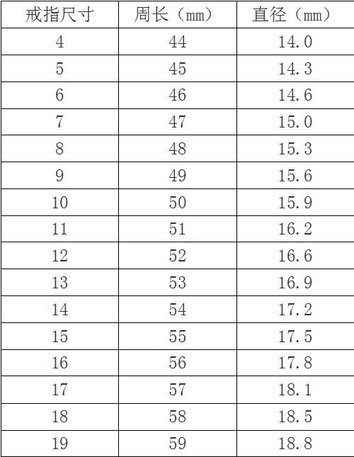 明月认为大家只要知道内直径就可以了,这个对照表中的“戒指尺寸”可记可不记,购买的时候只需要报出所需要的直径就可以了。