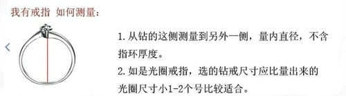 如果有戒指那就简单了,直接量个戒指的内直径就可以了,图片上有说明的