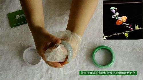 2、使用保鲜膜或者塑料袋套在手上,然后再佩戴,能减少摩擦,比较方便地佩戴手镯。