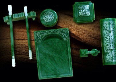 碧玉多用于制作器皿,也有一些用来生产首饰和玉器,也是历来是玉雕工艺品的上乘之选。碧玉的质地细腻如墨绿色凝脂,少瑕疵的稀有,多半有色系不纯正伴有分布不均的墨点。到了清朝乾隆中期以后,碧玉才成为宫中普遍使用的玉种,他们还善于借鉴绘画、雕刻、工艺美术,集阴线、阳线、平凸、隐起、镂空等多种传统做工,又吸引了外来艺术影响并加以揉合变通,创造与发展了工艺性、装饰性极强的玉器工艺。有鲜明的时代特点和较高的艺术造诣。多见于“金银错”,痕都斯坦的作品中。