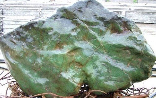 青海碧玉:2000年左右,在中国青海与西藏接壤处的芒崖地区的河道阶地发现了一批籽料碧玉。这批碧玉籽料磨圆度好、体量大,重量从10几公斤到几吨。芒崖碧玉特点是具有几厘米厚到10几厘米厚的皮壳,皮壳的颜色与肉质具有明显的界限,芒崖碧玉颜色呈灰绿色,有黑点,少绺裂,玉质较差。