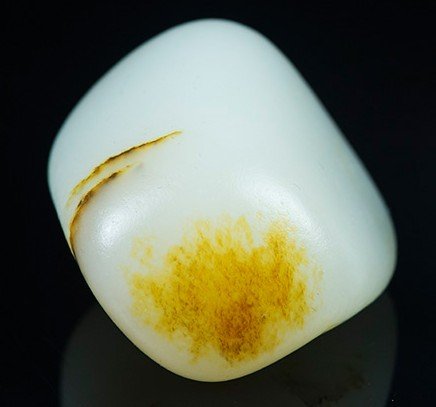 白玉的棉一般较易出现在较透的料里,象山料,特别是青海料里棉较普遍(顺便说一下青海料棉是孤立较大的点棉居多,而新疆山料以极细小密集点棉居多。)。为什么棉易出现在较透的料里?这是因为较透的料富含二氧化硅,二氧化硅的析出即为棉,成份分析也证明了白玉的棉的成分为二氧化硅。所以大家知道了棉是不能被盘掉的,因为二氧化硅是很稳定的。