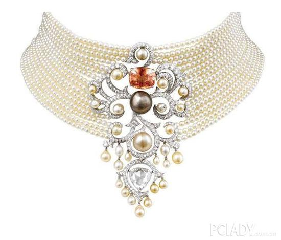 卡地亚当年是“皇帝的珠宝商、 珠宝商的皇帝”,即使设计珍珠首饰也不会偏离他们奢美的风格。今年的Secrets et Merveilles系列以皇室、贵族、名媛为原型,设计出的珍珠首饰让每一个女性都可以化身为珍珠皇后。温润感性的珍珠并不是主角,而是烘托奢美风格最 好的元素。珍珠温和的光泽串起层层叠叠的项链,与钻石、玉石、尖晶石搭配,勾勒出繁复奢华的宫廷风格。