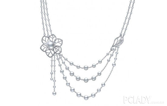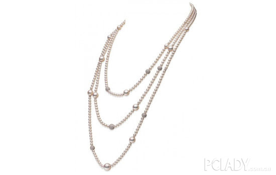 线条流畅的三层叠链设计优雅独特。优美的日本Akoya珍珠长款项链点缀与钻饰让整条珠链赋予灵动感觉,球形镂空的钻石链扣更展现巧夺天工的珠宝工艺技术。