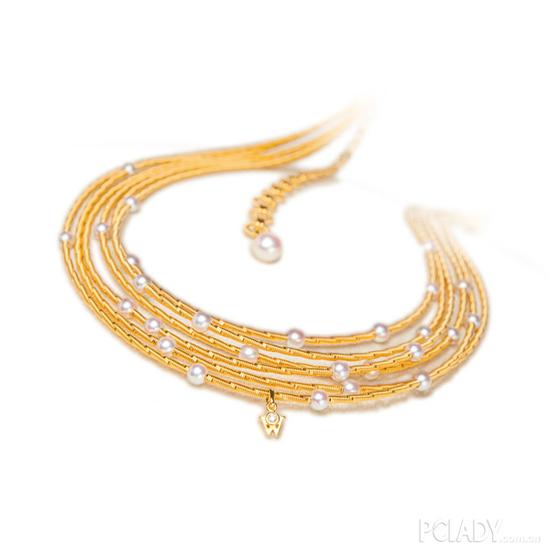 德国珠宝世家Wellendorff华洛芙最新“珍珠之悦”项链,选用至臻至纯的18K黄金,搭配天然海水珍珠,黄金绚丽的色彩与珍珠温润的光晕巧妙结 合,优雅迷人。黄金的珍贵,在于它历经千年而本色不变,寓意情比金坚。珍珠的美丽、珍奇和神秘,深深吸引着人们,因为弥足珍贵,所以在很漫长的一段时间 里,无论是欧洲还是中国,只有王室皇族才能享用。“珍珠之悦”项链采用Wellendorff经典的金丝编花工艺,在灵动的海水珍珠点缀下更加娇柔美丽, 黄金独特的温暖色调在珍珠神秘的晕彩珠光衬托中越显高贵典雅。珍珠与黄金缠绕带来的瑰丽视觉,如同白色花蕾沿着藤蔓含苞待放,气质不凡。
