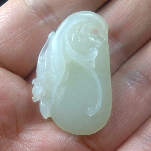 17、和阗玉雕作品常利用红皮或糖色来巧雕红色蝙蝠,寓意“鸿福齐天”或“鸿福无量”。