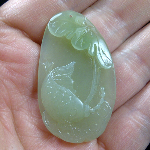 玉满斋 挂件 和田玉 翠青玉 年年有余 招财进宝 鱼跃龙门(淘宝购买 || 拍拍购买)