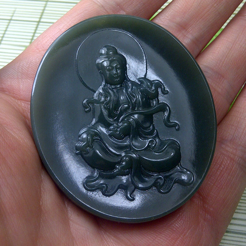玉满斋 挂件 和田玉 黑青玉细料 玉观音 纳福趋吉(点击购买)