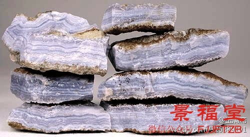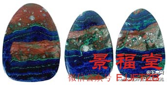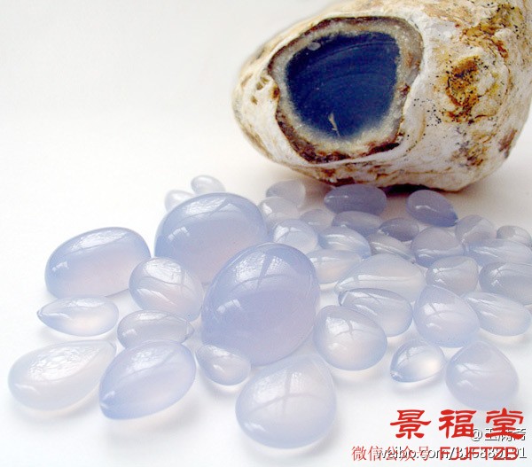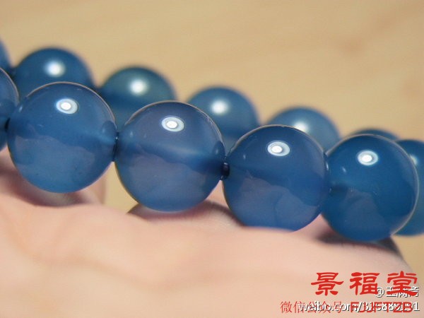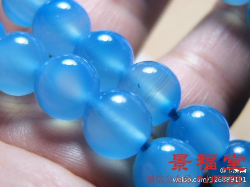 目前市场上流通的蓝玉髓大都是染色蓝玉髓,少量天然原色的蓝玉髓也有卖,可惜质量实在夸不起来。至今上过手的只有深蓝和蓝文两种,台湾的海蓝知道的人很多,可惜几乎都是染色物。人工染色的蓝玉髓,据说是用钴染料: