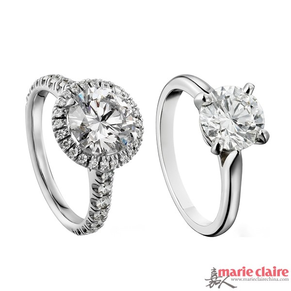 卡地亚Destinée订婚钻戒(左)、卡地亚Solitaire 1895订婚钻戒(右)
