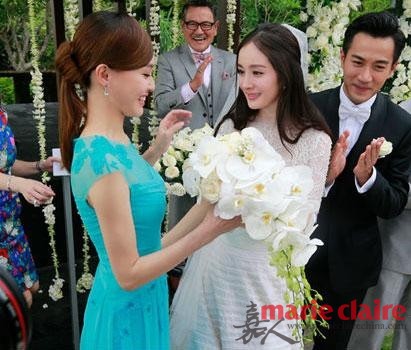 其实要说明星闺蜜的“新娘&伴娘”养眼组合,还真的不在少数,最让人印象深刻的当属大幂幂和伴娘“糖”了。