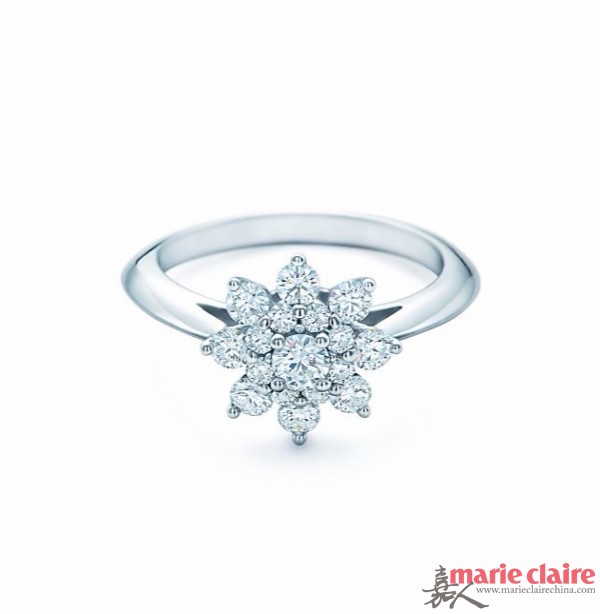 花朵是代表爱情和浪漫传统赠礼的永恒象征,在蒂芙尼的这款花形钻戒系列中,每颗圆形明亮式切割宝石均经精心镶嵌,栩栩如生地展现了花朵盛放时花瓣层叠舒展之美态。爱花爱世界的文艺女青年们,赶紧收下它,婚戒脱俗就是这么简单!