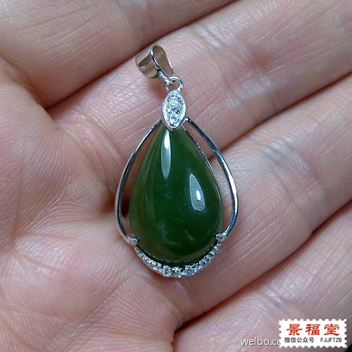 玉满斋 挂件 和田玉 碧玉 吊坠 心形吊坠 925银镶嵌 送合金链(点击购买)