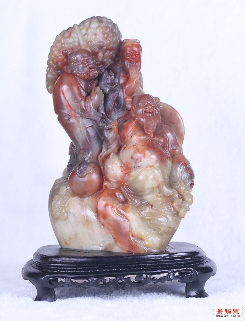 精品寿山石雕作品《寿山石巴陵桃花 三仙》图片