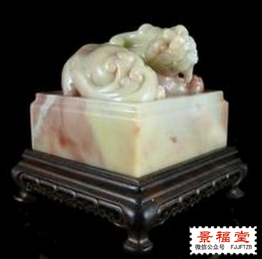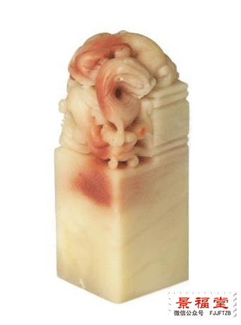 3. 博古图案类:平顶寿山石印章多刻博古图案钮,如夔龙、夔凤等,其雕刻技法为浮雕、阴刻、麻花(即“线刻”)三种。另外,还有钟鼎彝器、古钱、瓦当、斗台、寿字、亭如楼阁等钮饰。