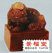 寿山石雕异兽钮,通高9.5厘米,6.6厘米见方。寿山石红色,雕异兽钮一。镌阳文“敬天尊祖”汉篆字。