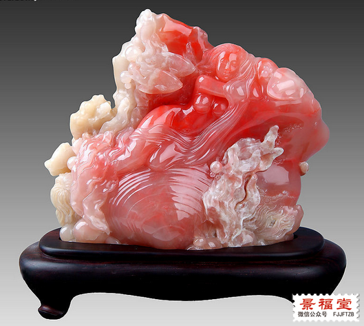 第三,看品种。从品种上来说,寿山石的种类繁多,当然这其中最令寿山石玩家赏心悦目的还要数上等的“田黄石”,但要说到收藏确实有些不切实际,而且目前市场上已基本没有新品,所以收藏者更应该关注其他石种,诸如芙蓉、桃花冻、荔枝冻、牛角冻、高山冻、水晶冻、环冻等这些品种。
