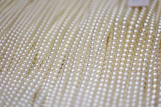 第一步:珍珠挑选,熟练的技师通过对每一颗珍珠的光泽、形状、颜色和大小等进行对比,挑选出品质上乘的珍珠。