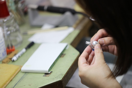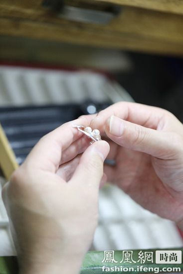 MIKIMOTO珠宝技师进行珍珠镶嵌工作
