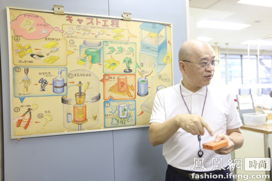 MIKIMOTO珠宝工场负责人津山新次向大家展示珠宝磨具制作过程