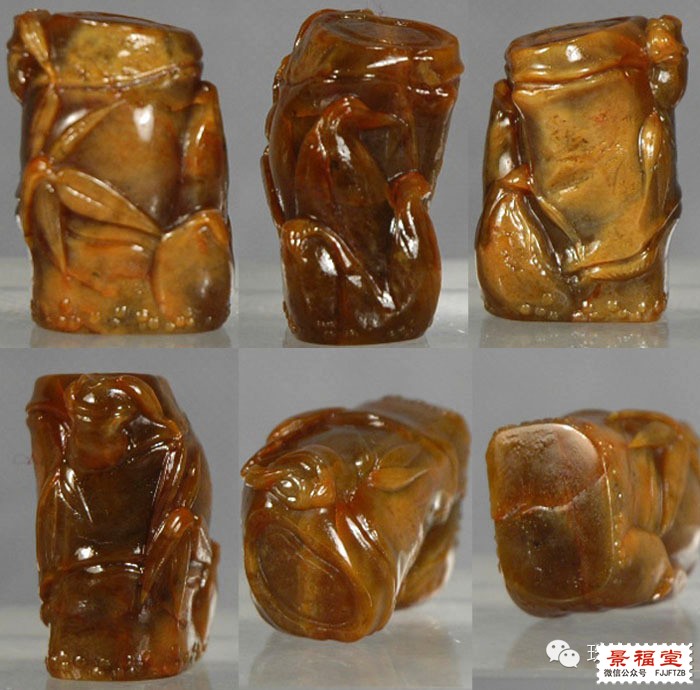 田黄石质极温润可爱,微透明或半透明,肌里隐隐可现罗卜状细纹,颜色外浓而向内逐渐变淡,石表有时裹黄色或灰黑色石皮,间有红色格纹,历有"石帝" 、"石中之王"等美称。