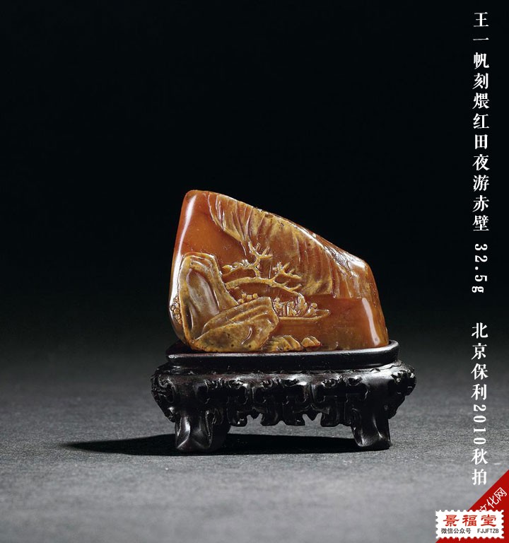 又说:“田石质娇嫩,中有极细之萝卜纹,间生红格,或裂痕,乡人所谓‘无格不成田’也。红格虽为田石特征,究为石病,格多者,自非上品。”这里说得非常辩证,既介绍了萝卜纹、红格等田石特有的标志,又指出了红格原为石病的本质。