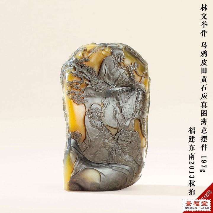 《小志》记:“田石,掘于寿山溪一带之溪旁水中。溪长数里,沿溪之田,经其水流浸渍者,偶尔发现有田石。石质结温润凝腻。因其出土地段,有上坂、中坂、下坂、碓下坂之分……田石色分黄、白、红、黑数种,以黄知名。”我们今日把田石统称为“田黄”,一来是田石确以黄色居多,二来即使是白、红、黑等色,亦皆带有黄意,不易区分,故都以“田黄”称之。田黄石贵为“石帝”,一直为爱石者尊崇,这一点《小志》中也有表述:“田石质与色之珍贵,旧已有名。复以其久蕴土中,多含暖气,相传载之北方,印泥虽冻,印之立解,世人争重。”说田黄石能解冻印泥,这多少有点神化的意味了,但也能从一个侧面反映田黄石为人所重的地位。