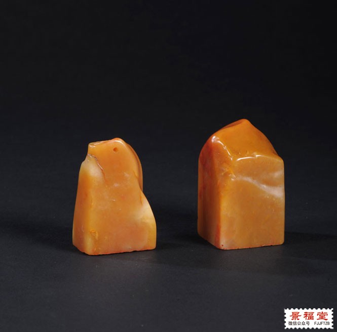 然而杜陵之美却还不止于此。《小志》中说,杜陵坑“偶有红格裂痕者,迫似田石,掘于土者,亦有萝卜纹,故石工恒以赝下坂田,虽久于玩石者,几不能辨。然其纹曲而细,非若田黄之纹直而绵密;且晶莹晃朗,与田石不同;其性坚脆,刀过处,石屑卷起,亦与田石之韧性有别。”这里的“掘于土者”指的是掘性杜陵坑,即从矿体上崩落埋于土中者,为独立石块,其质色与田黄极其相似,以其冒充田黄者颇众,而杜陵之美,由此亦可见一斑。
