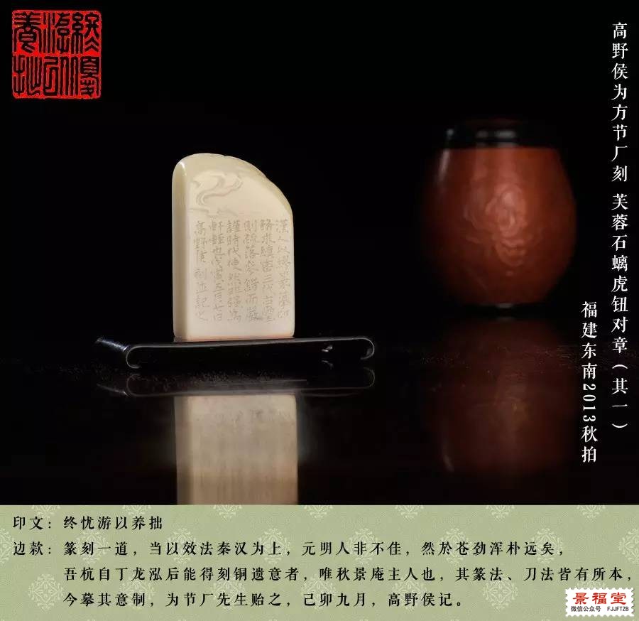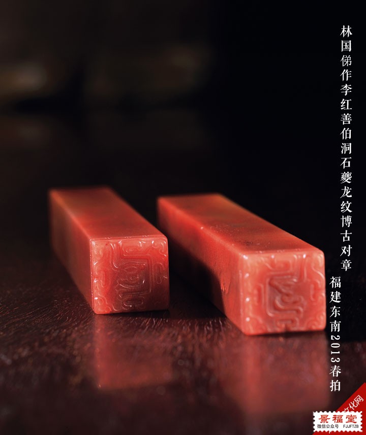 有了量的积累,自然越来越多的文人得以一窥寿山石的真面目,以寿山石为章料的做法便普遍流传开来,“质温栗、宜镌刻、五色相映”的寿山石自此便真正成为了文人案头上不可或缺的方寸雅物。