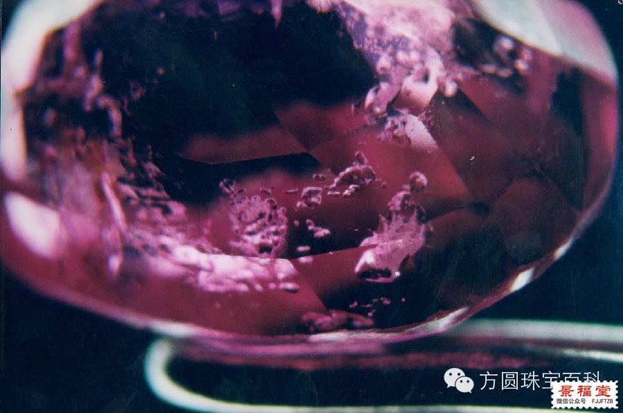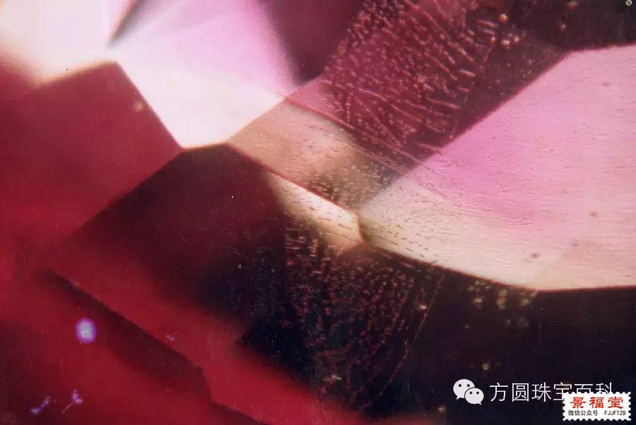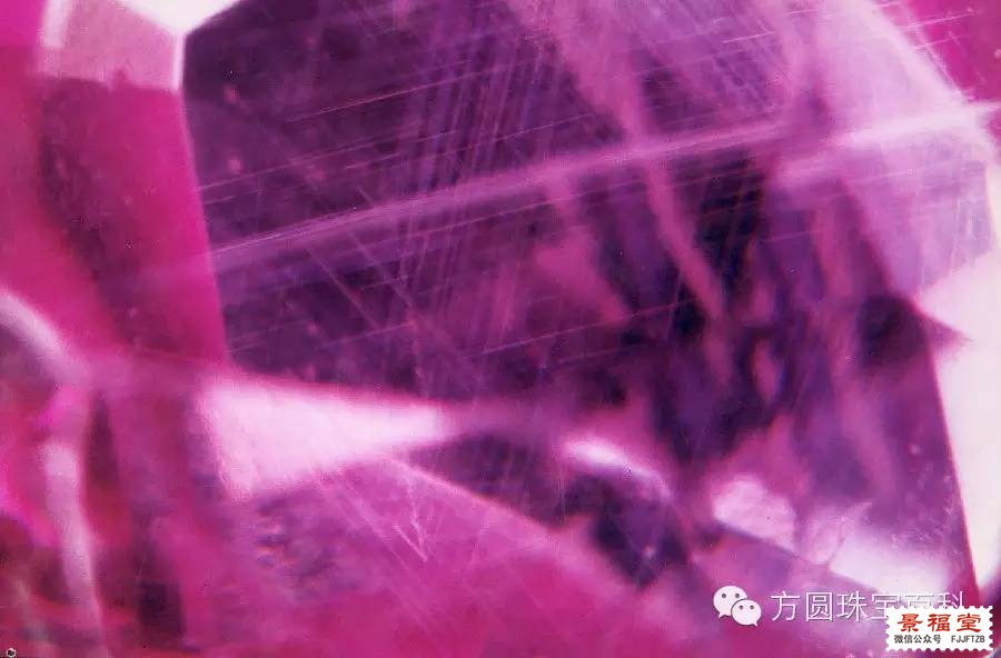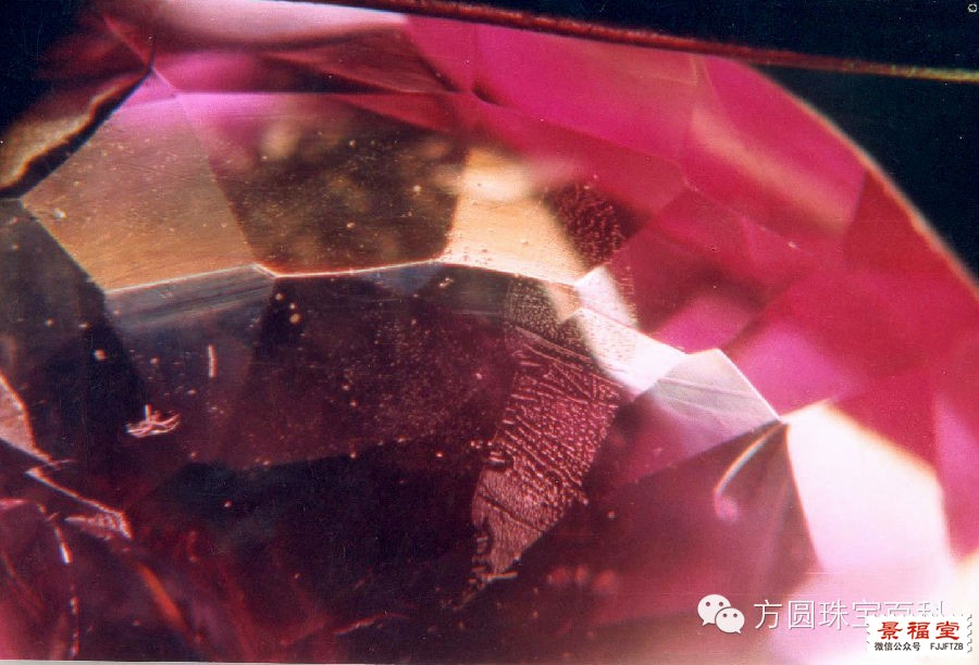 包裹体: 固态:金红石、刚玉、硬水铝石 指纹状包裹体,裂隙、聚片双晶纹双 晶纹 次生包裹体