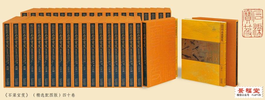本套图书由江西美术出版社和故宫出版社联合出版,在原版《石渠宝笈》的基础上选配著录作品的精美彩图,统一设计、排版,汇编为40卷: