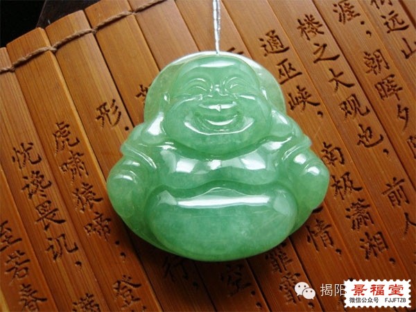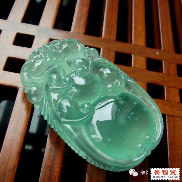 图16:玻璃种绿晴水福在眼前挂件,内部有棉