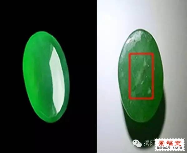 图17:正面完美,背面有明显绺裂的翡翠戒面