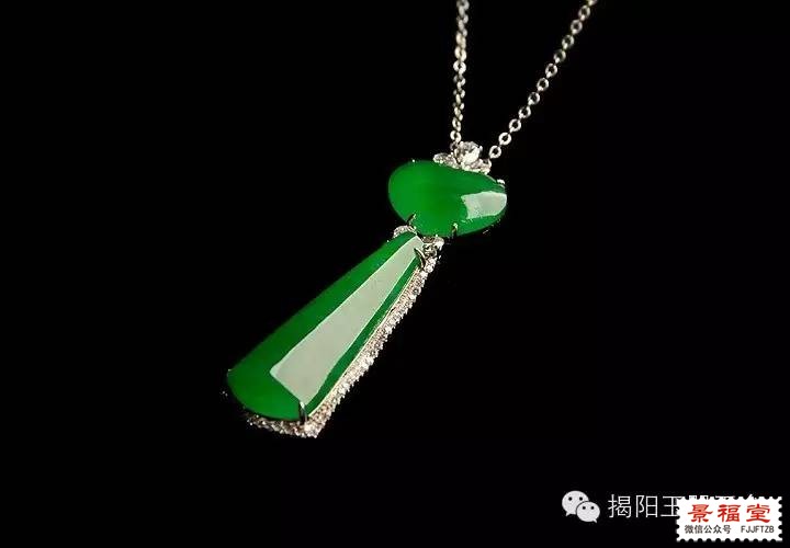图19:18k白金真钻玻璃种阳绿如意吊坠