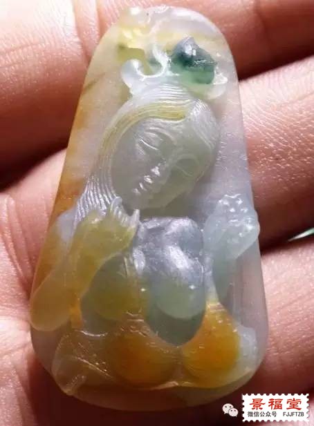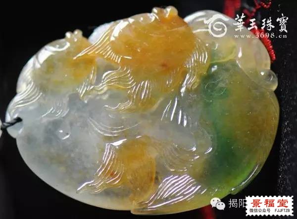 图27:冰种三彩神仙鱼挂件(黄+绿+无色)