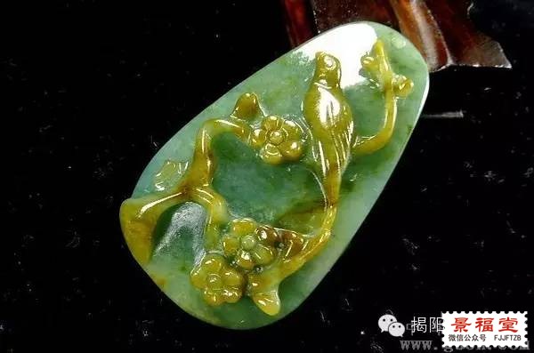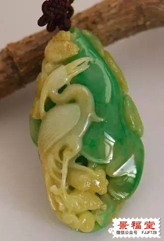 图25:糯种黄加绿仙鹤吊坠(黄色+绿色)