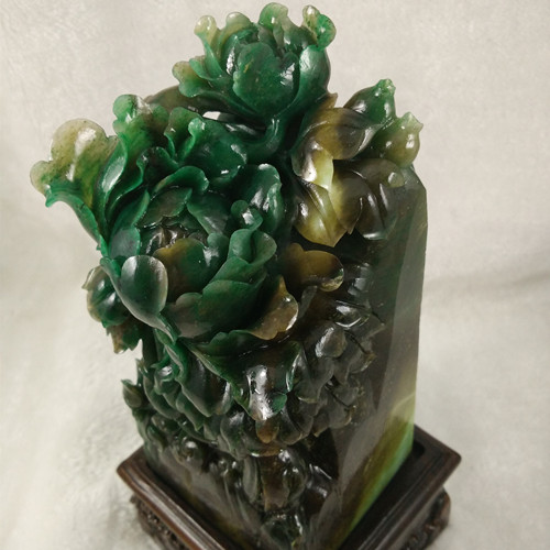 在鉴赏独山玉雕时,应注意作品的外观造型是否稳妥大气,边缘线条是否富有节奏变化,层次空间疏密对比是否得当合理。同时,还应注意具体形象塑造是否准确逼真,以形传神。