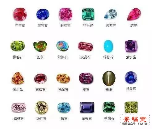 钻石、蓝宝石、黄玉,以及真正的白色宝石,例如欧泊与月光石等等。常见的白色宝石有: