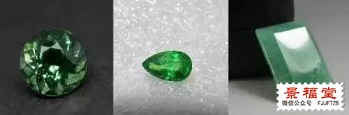 传统的绿色宝石是祖母绿,也有沙弗莱石(一种石榴石)、铬透辉石。橄榄石更像是橄榄绿色。常见的绿色宝石有: