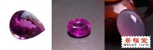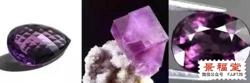 紫色宝石非常少,紫水晶是一个典型的例子,萤石也会有紫水晶一样色色彩,有些尖晶石、碧玺和蓝宝石也会有漂亮的紫色。玉髓有时候会显示出独特的薰衣草色。常见的紫色宝石有: