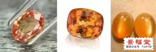锰铝榴石是最著名的橙色宝石,一些经过热处理的蓝宝石也会展现出漂亮的橙色。好的火欧泊亦能展现出漂亮的橙黄色到橙红色。常见的橙色宝石有: