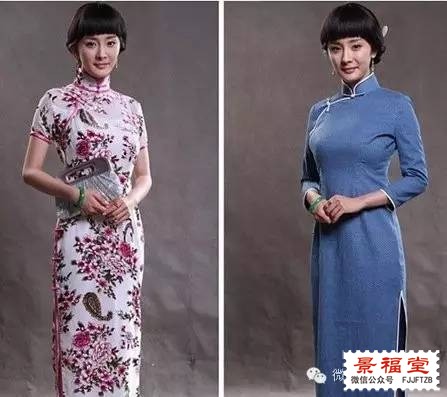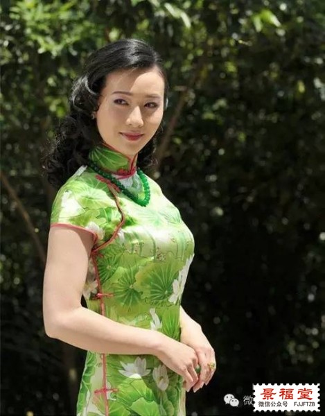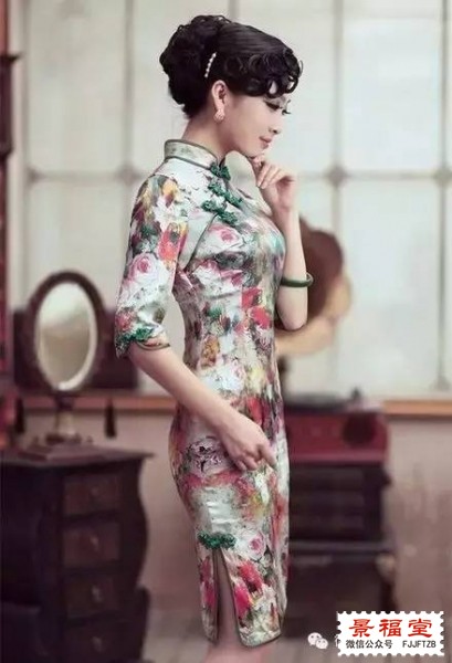 青绿色翡翠手镯与花旗袍,犹如大自然的赏赐,给人超凡脱俗的美。