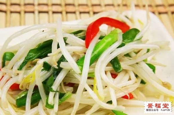 19、豆芽鲜嫩,炒时速度要快。若在炒时放一点醋,则能除豆芽的涩味,并且还能保持其爽脆鲜嫩;